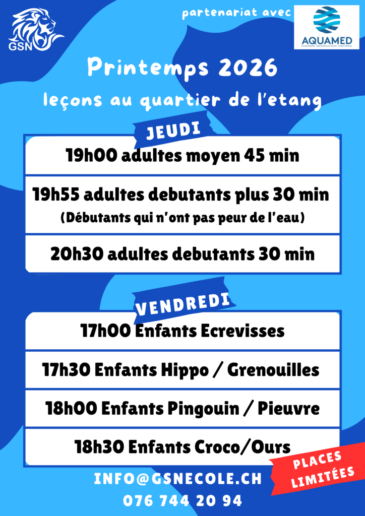 Bonne nouvelle, certains de vos cours reprennent dans une piscine toute équipée au quartier de l’étang jusqu’en juin 2026 !