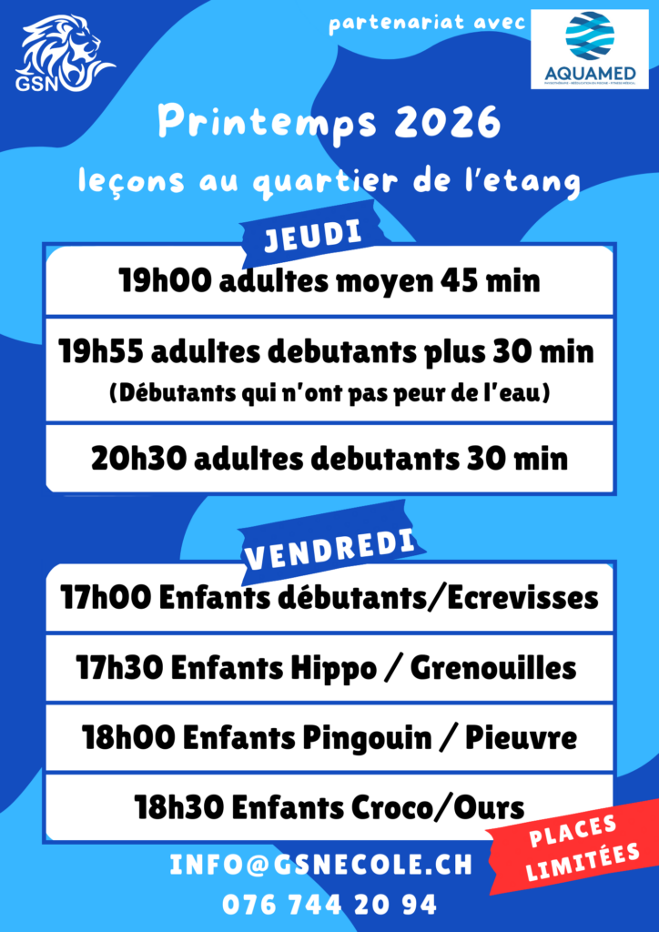 Bonne nouvelle, certains de vos cours reprennent dans une piscine toute équipée au quartier de l’étang jusqu’en juin 2026 !